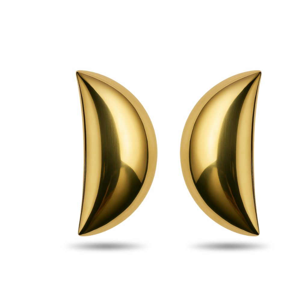 Product Description: Discover the allure of the abstract with our Golden Pod Stud Earrings. Crafted from lustrous 18K gold Plated metal, these unique earrings showcase an intriguing, organic-inspired shape that gently curves inward, creating a sophisticated and eye-catching profile. Ideal for those who seek distinctive accessories that blend art and fashion seamlessly.