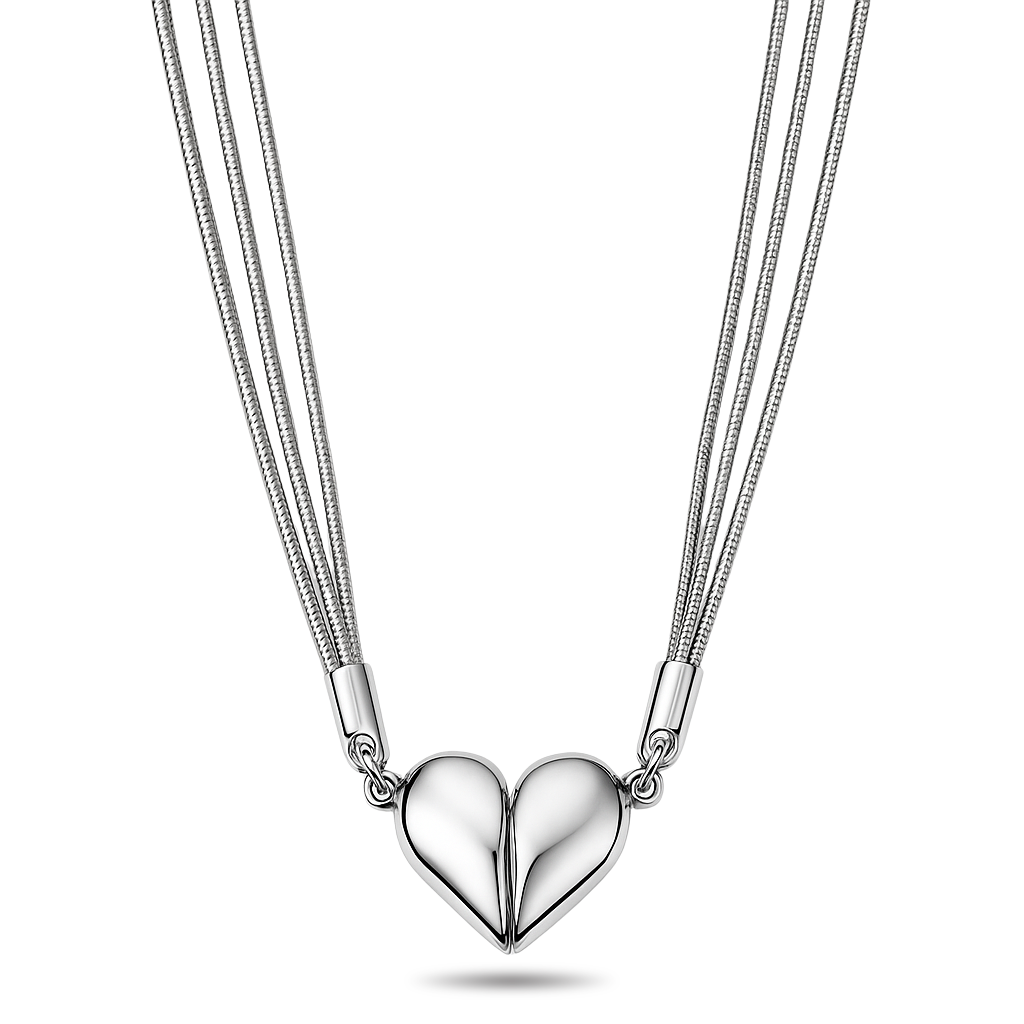Product Description: Celebrate an unbreakable bond with our Magnetic Connection Heart Necklace. This unique set features two separate necklaces, each with a sleek, polished silver-tone half-heart pendant. When brought together, the magnetic forces draw them seamlessly into a complete, harmonious heart, symbolizing two souls connected as one. Each half is suspended from multiple delicate snake chains, creating a modern and elegant look. Perfect for couples, best friends, or family members, this set is a beautiful expression of unity and enduring affection. A thoughtful gift that truly shows how two halves make a whole.