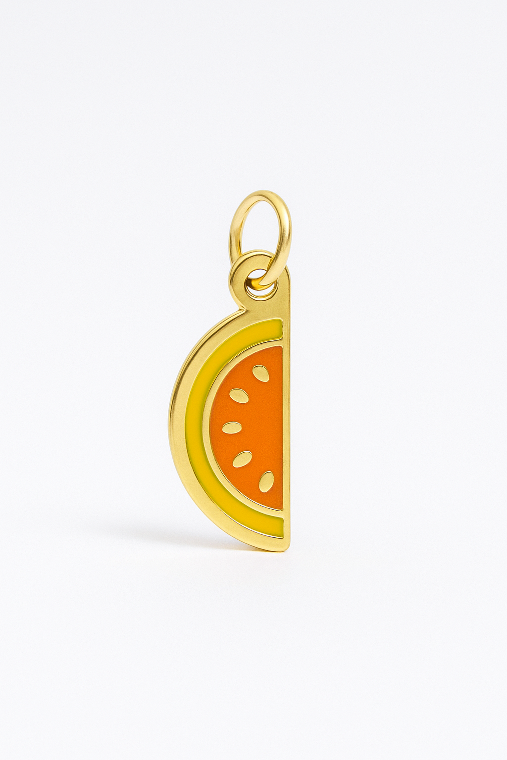 Product Description: Squeeze the day with our Zesty Slice Charm! Bursting with juicy color, this cheerful charm features a tangy orange wedge outlined in sunny yellow enamel, all wrapped in a gleaming 18K gold finish. It’s the ultimate pick-me-up for your charm collection — fun, fresh, and full of flavor. Pop it on your bracelet or necklace and let the good vibes roll. Perfect for fruity fashionistas and citrus lovers alike!